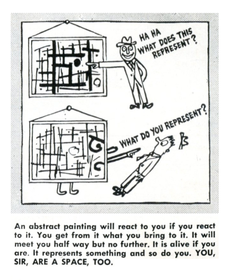 – Ad Reinhardt: ‘Monologue’ (Mary Fuller, taped 27 April 1966), excerpted Artforum 9, no. 2 (October 1970) and reprinted in Barbara Rose (ed): ’Art-as-Art’, University of California Press, 1991, p24